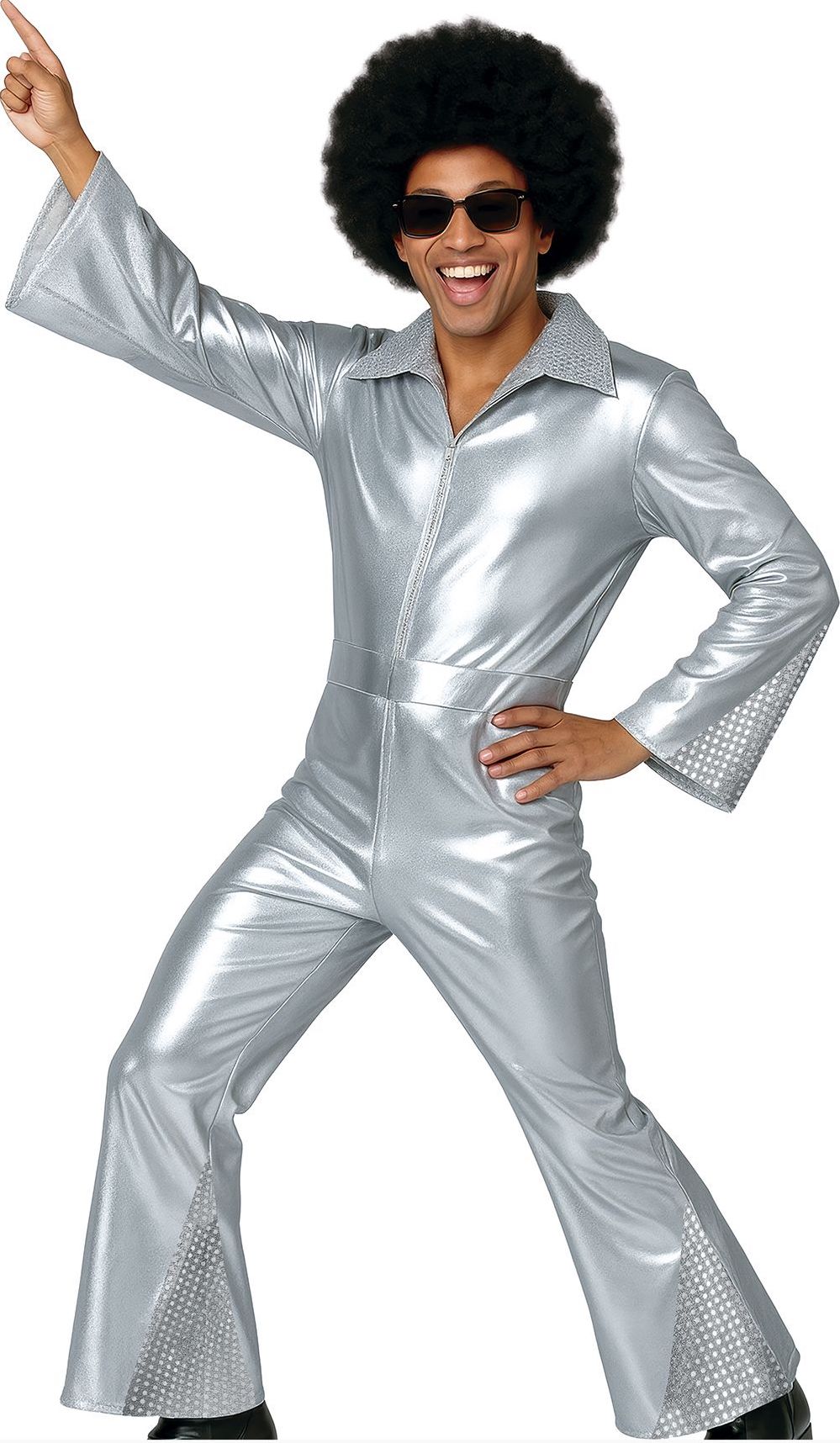 Costume Disco Anni 70 Argento e Rosso per Bambino