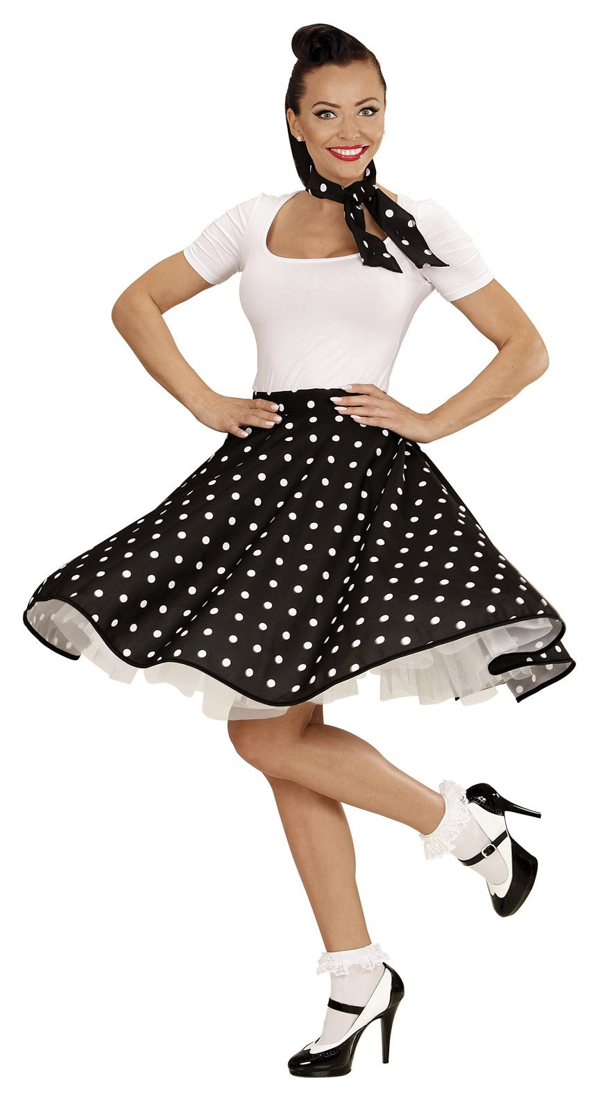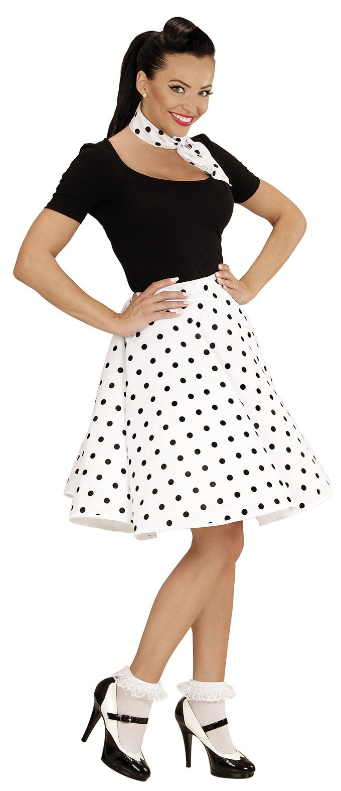 Gonna Nera Anni 50 con Pois e Fazzoletto Bambino