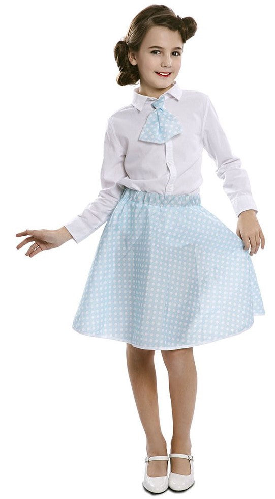 Gonna Blu Anni 50 con Pois e Fazzoletto Infantile