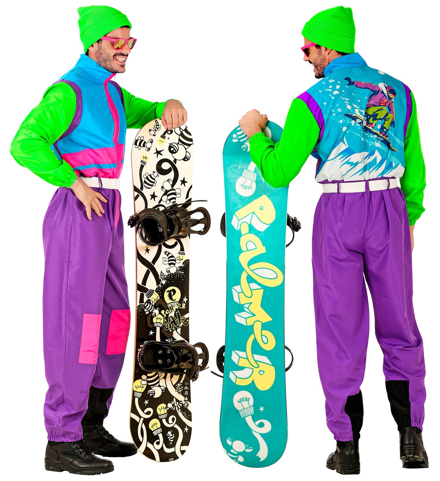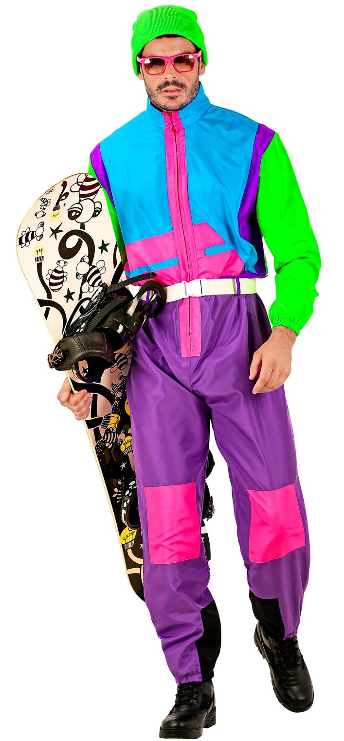Costume da Snowboarder Anni 80 Neon per Adulto