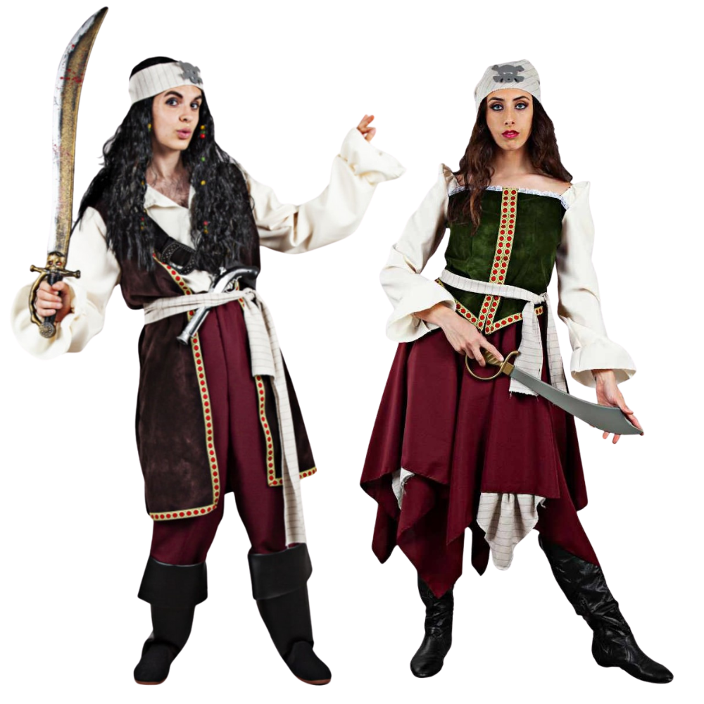 Nella nostra pagina potrai trovare tutto ciò di cui hai bisogno per diventare il pirata che hai sempre desiderato essere. Dai classici gilet e giacche lunghe fino ai fazzoletti per la testa e cappelli con piume, i nostri costumi ti faranno trasportare direttamente all'epoca d'oro della pirateria e ti sentirai come se stessi esplorando i sette mari in cerca di avventure e fortuna.