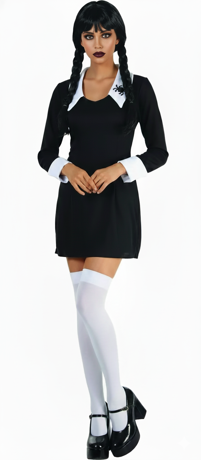 Stai cercando un Mercoledì per la tua festa in maschera? Su Disfraces Simón potrai trovare un ampio catalogo di costumi della figlia della eccentrica e macabra Famiglia Addams sia per donna che per bambina. Inoltre, sul nostro sito troverai un'ampia selezione di accessori come parrucche, calze e trucchi per travestirti nel modo più realistico da questo personaggio della famosa serie televisiva La Famiglia Addams, e avrai successo alla tua festa di Halloween.