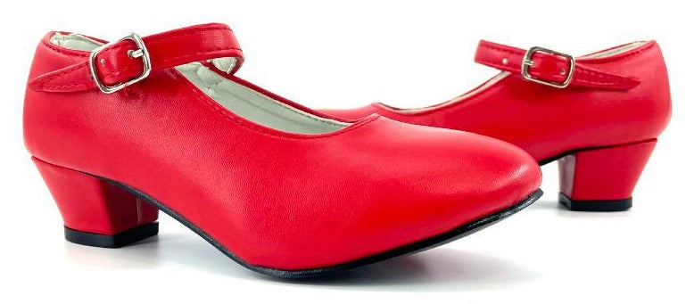 Zapatos de Flamenca Rojos con Tacón para Niña
