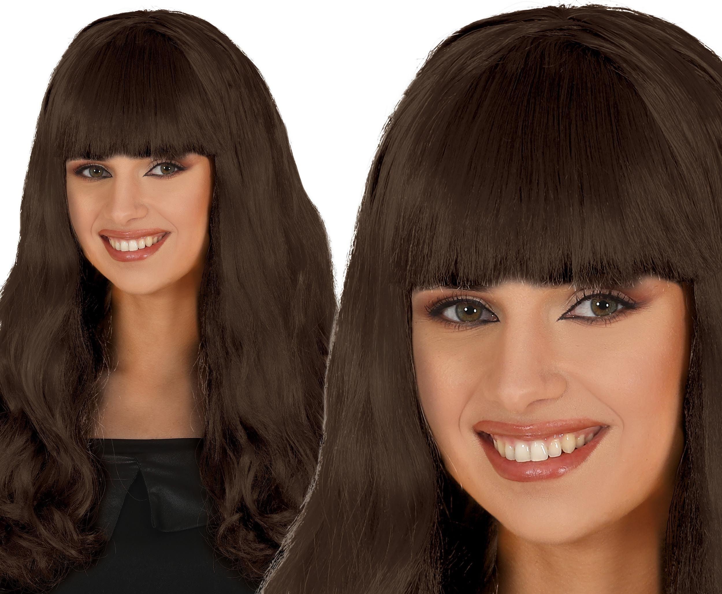 Peluca Castaña Larga con Flequillo Recto
