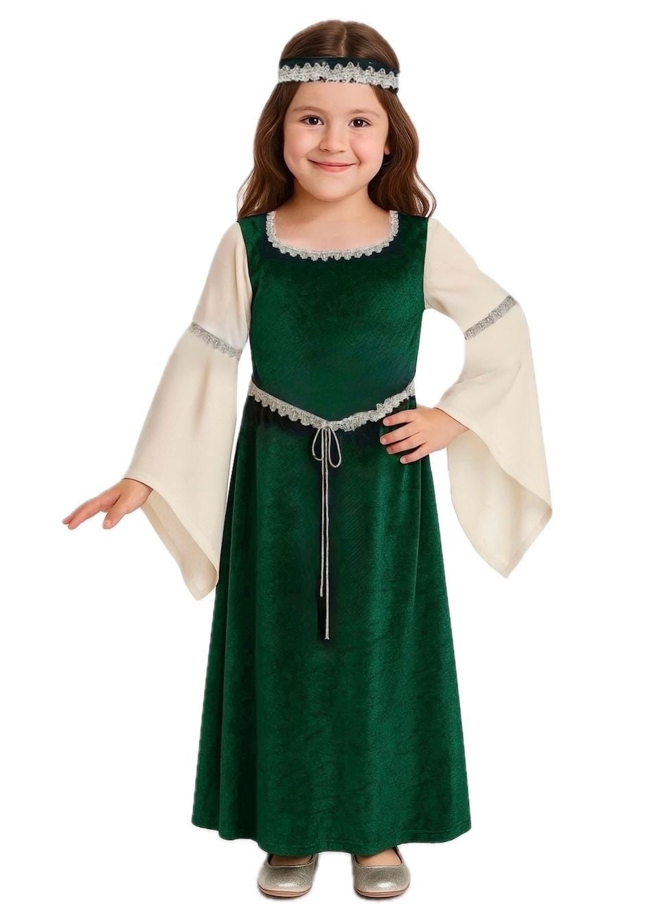 Disfraz de Dama Medieval Verde para Niña