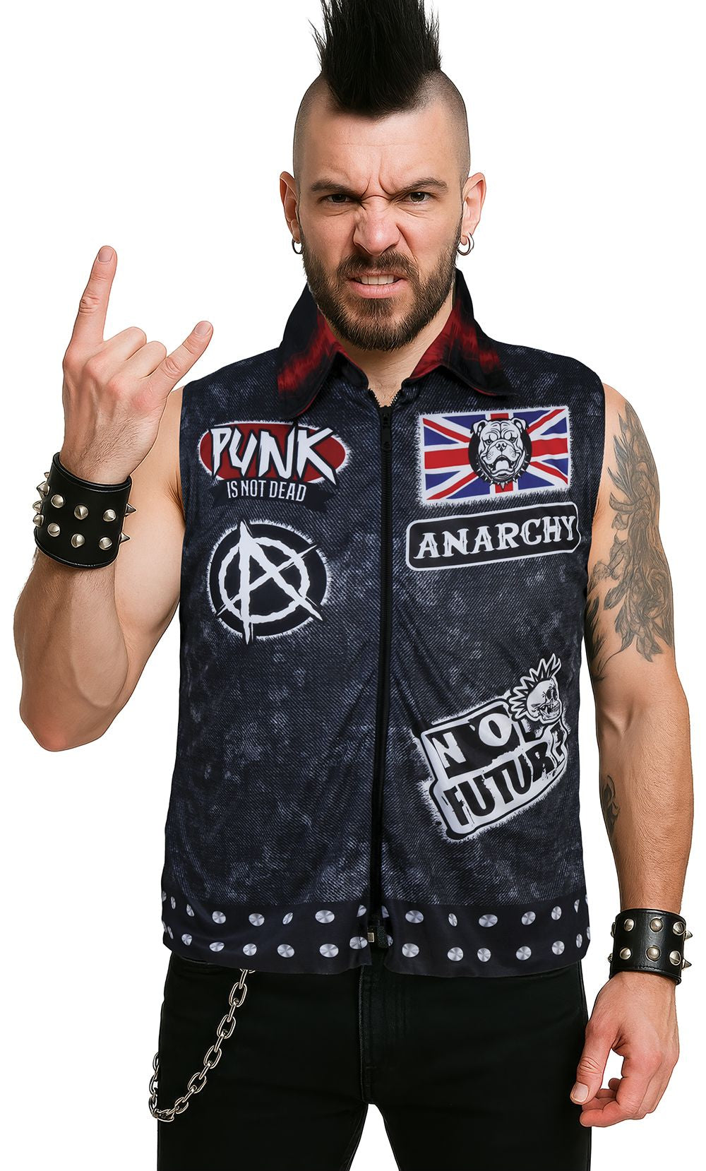 Chaleco Punki con Parches para Adulto