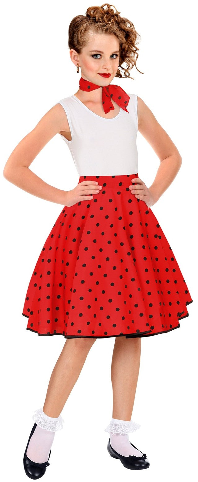 ¿Estás buscando disfraces años 50 para disfrazarte en grupo? Con los disfraces de chica años 50 para mujer y niña con falda y pañuelo de lunares tendréis los trajes perfectos para disfrazaros al más puro estilo de los años 40-50 y triunfaréis en la fiesta de disfraces.