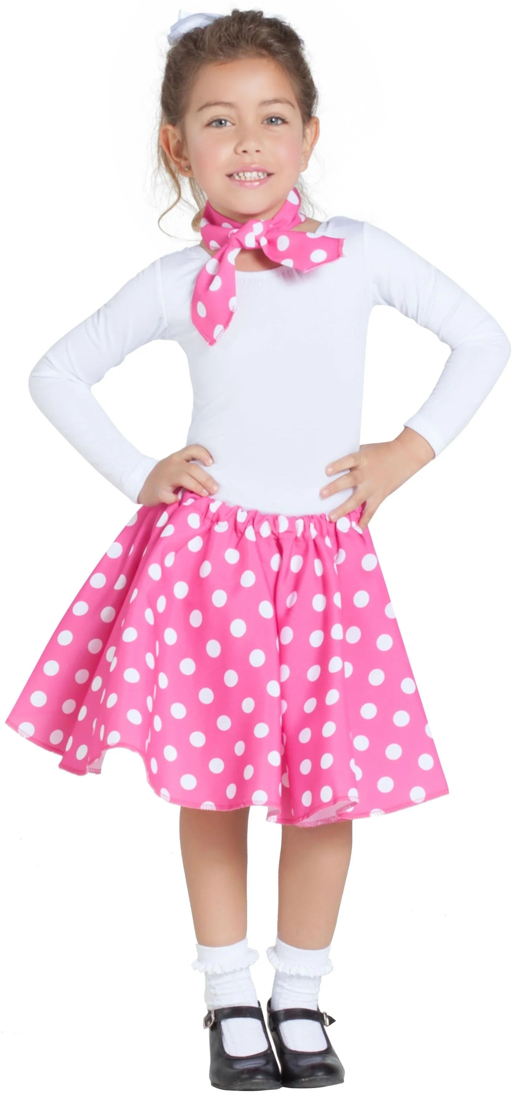 Falda Rosa Años 50 con Lunares y Pañuelo Infantil