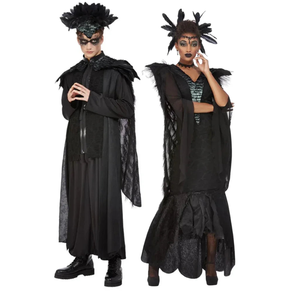 ¿Estás buscando disfraces de Halloween para ir en pareja? Con los disfraces de rey y reina cuervo para hombre y mujer tendréis los trajes más estilosos para disfrazaros como hechiceros y brujas oscuras  y triunfaréis en la fiesta de Halloween.