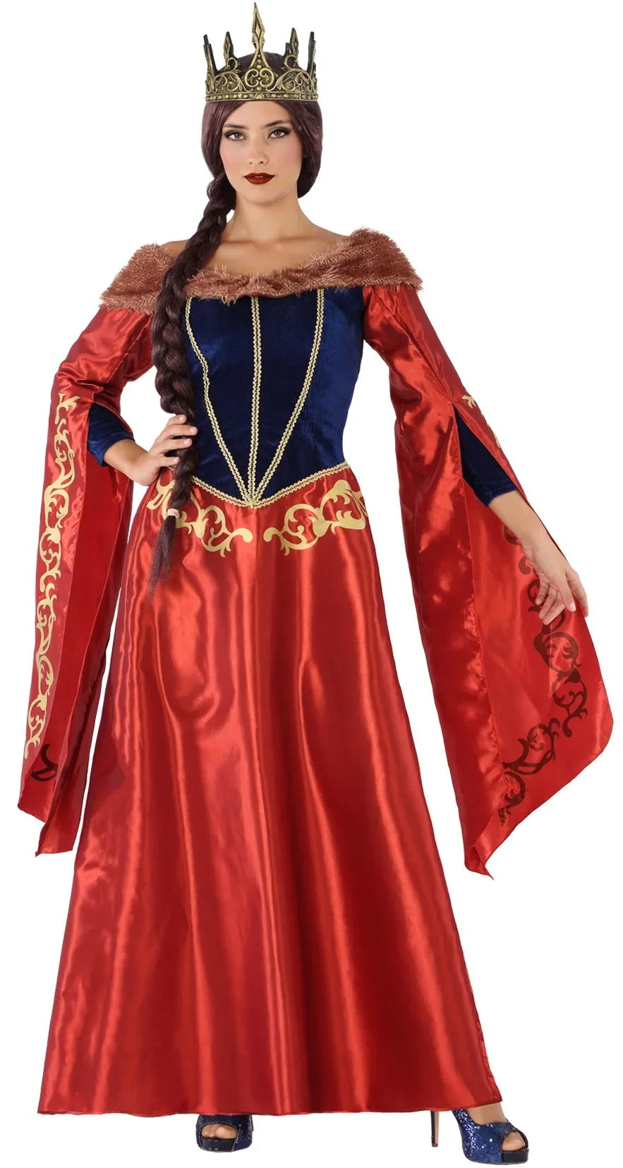 Disfraz de Reina Medieval Roja y Azul para Mujer