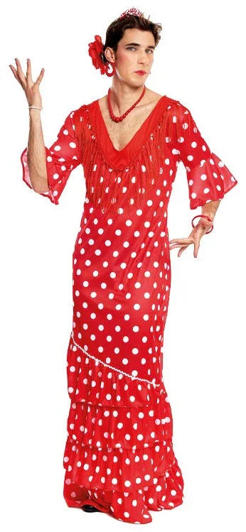 Disfraz de Flamenca Rojo con Lunares para Hombre