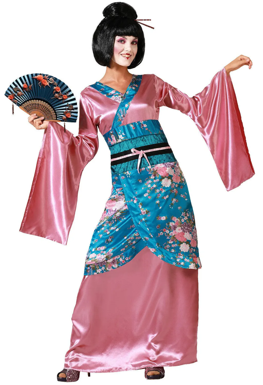 Disfraz de Geisha Rosa y Azul para Mujer Geishas Atosa