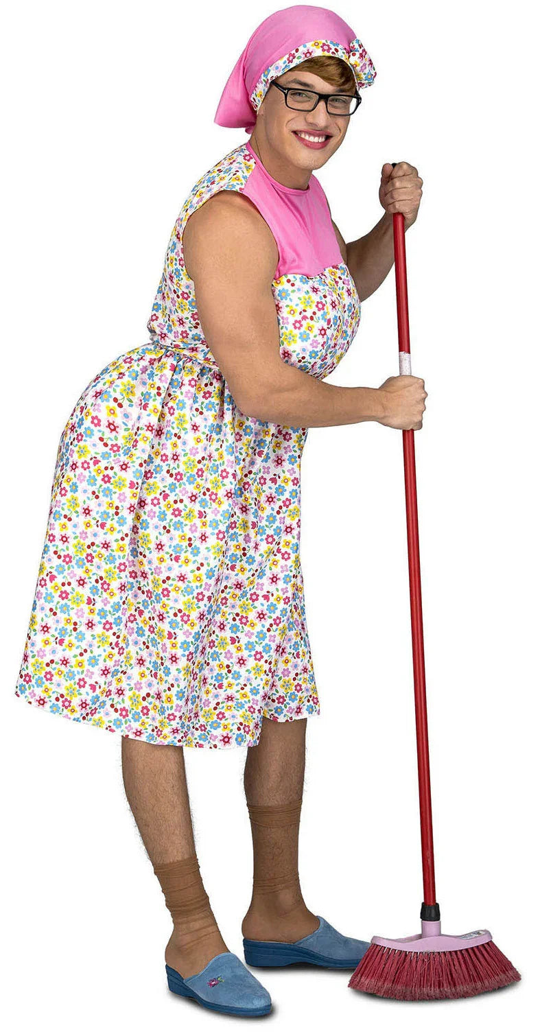 ¿Buscas el disfraz que más te haga reír en tu fiesta de disfraces? Este disfraz de Maruja para hombre hará que te conviertas en la señora más cotilla del barrio de la forma más original.