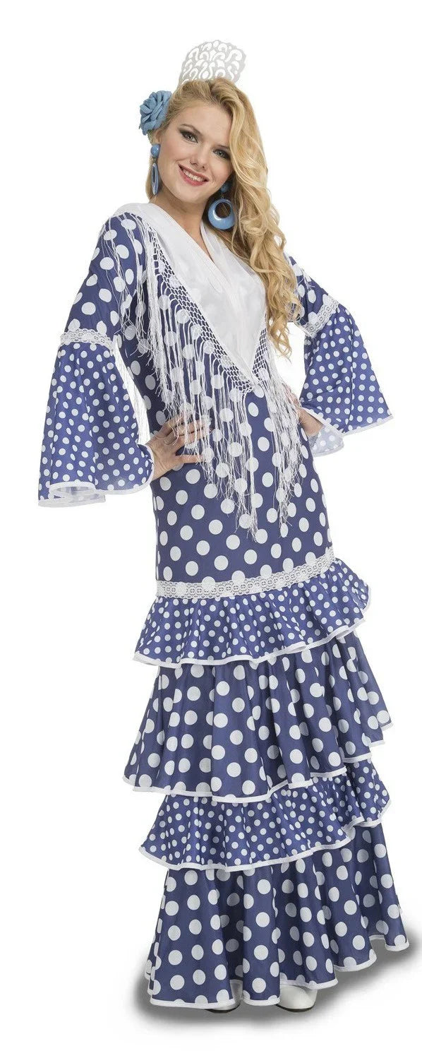 ¿Quieres un traje de sevillana para acudir a tu fiesta? Con el disfraz de sevillana azul oscuro para adulto tendrás el vestido de sevillana ideal para acudir a tu fiesta y destacarás por su gran diseño y calidad.
