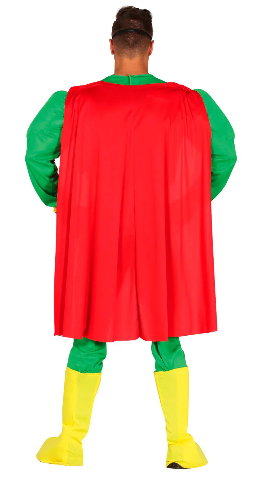 Incluye: antifaz, capa, mono, guantes y cinturón.