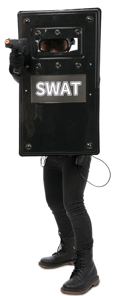¿Estás buscando un escudo de policía para tu disfraz? Con el escudo de policía SWAT tendrás el complemento perfecto para disfrazarte como los agentes de las fuerzas especiales SWAT o los policias antidisturbios y triunfarás en tu fiesta de disfraces.