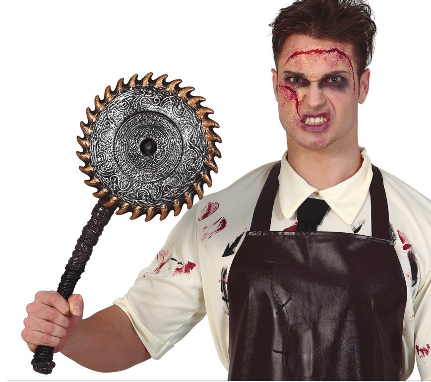 ¿Estás buscando un hacha para tu disfraz? Con el hacha de sierra de 55cm tendrás el complemento perfecto para gran variedad de disfraces como torturador, asesino, verdugo, entre otros, y triunfarás en tu fiesta de disfraces.