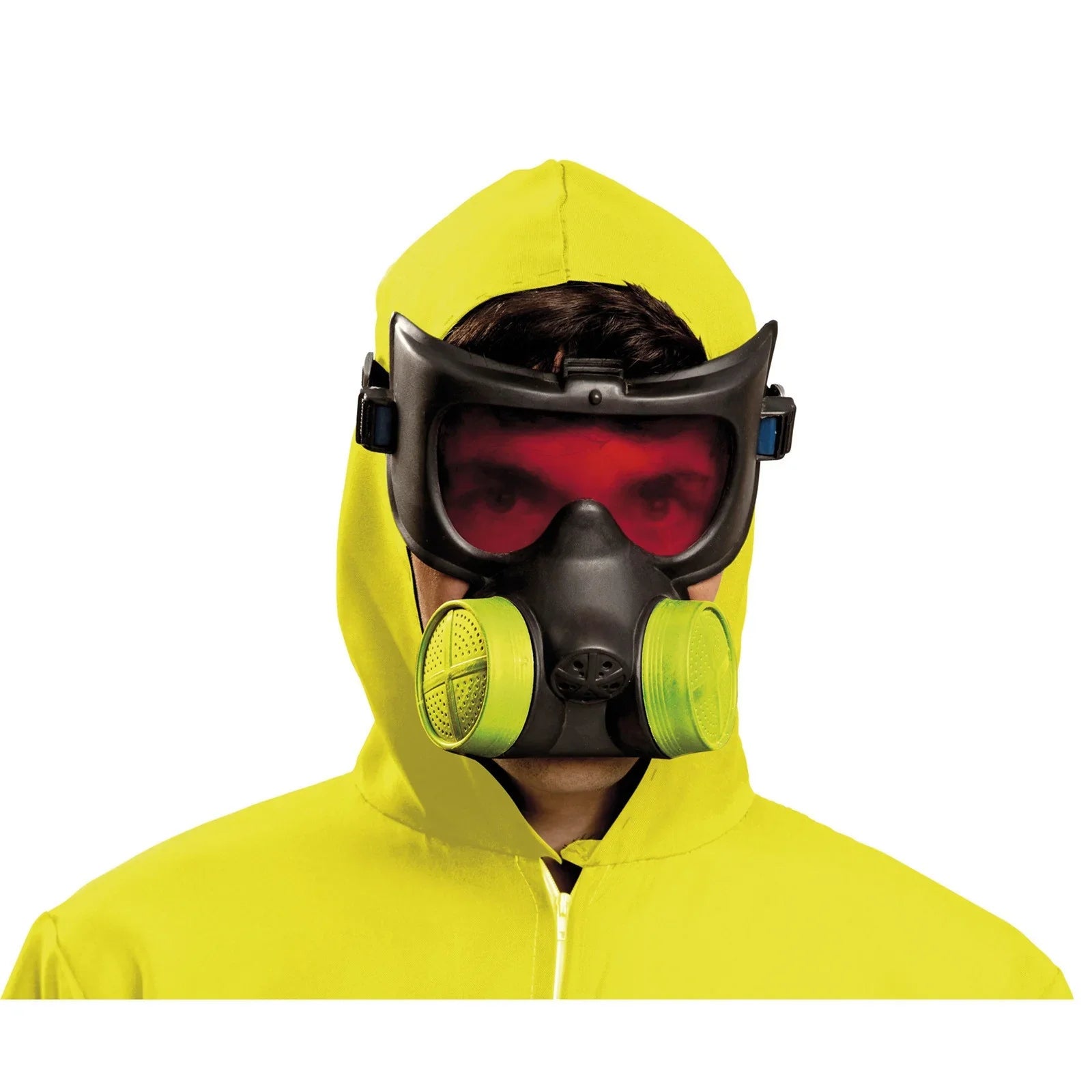 Máscara de gas de plástico rígido con filtros en color naranja amarillento y pantalla roja, perfecta si te quieres disfrazar de Jesse Pinkman o Walter White de la serie Breaking Bad.
