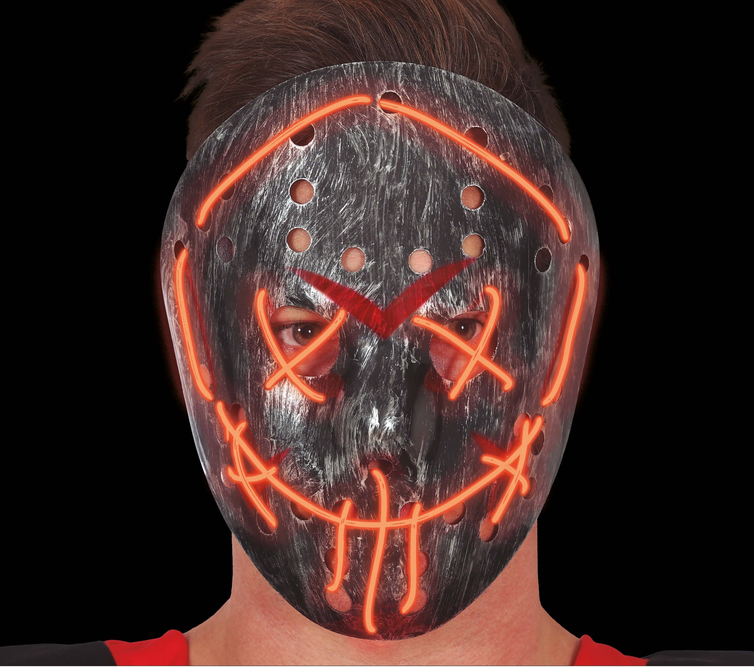 ¿Estás buscando una careta para tu fiesta de Halloween? Con la máscara de hockey en color plata con luz tendrás el complemento perfecto para tu disfraz de jugador siniestro de este deporte y triunfarás en tu fiesta de Halloween.