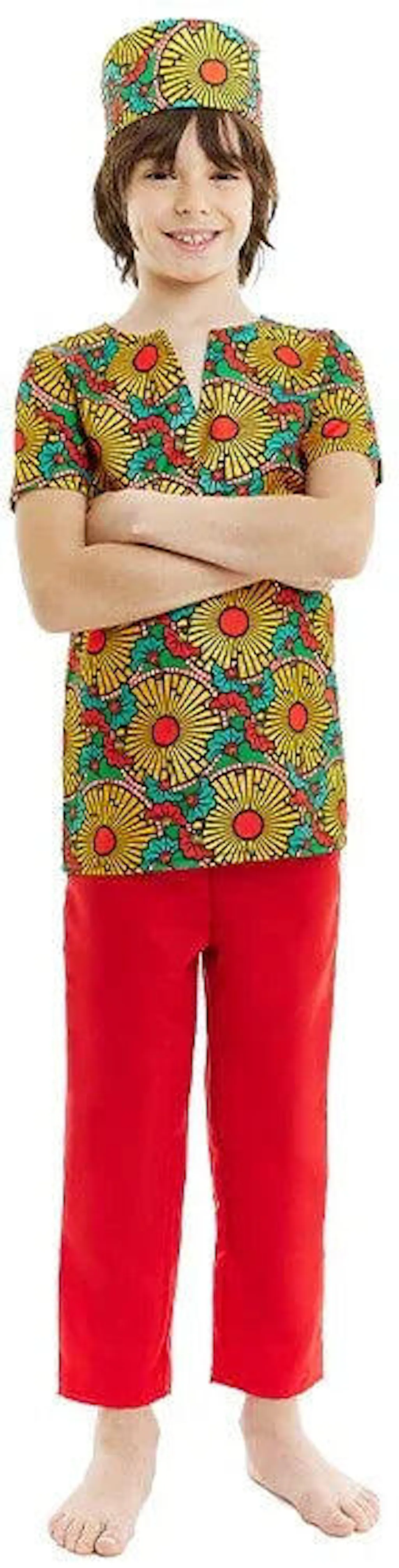 Stai cercando un costume da africano per tuo figlio? Con il costume da africano per bambini con stampa floreale avrai il vestito perfetto per travestire tuo figlio con i colorati abiti tipici della zona dell'Africa occidentale e sarà il bambino più bello della festa in maschera.
