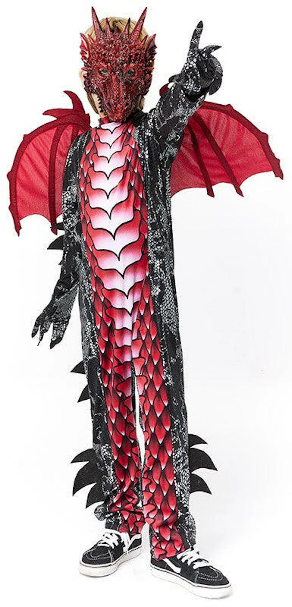Costume di Drago Nero e Rosso con Ali per Bambino