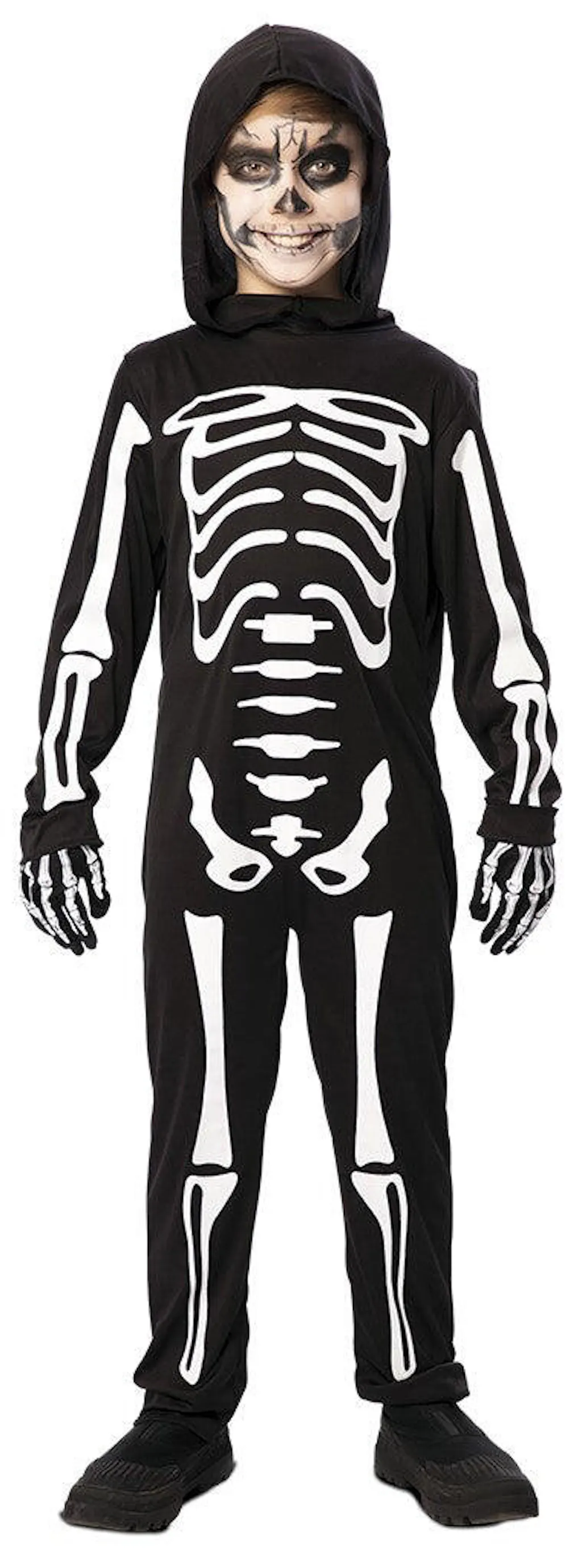 Stai cercando un costume da scheletro per tuo figlio? Con il costume da scheletro fluorescente per bambini con cappuccio avrai un vestito che brilla al buio, perfetto per travestire tuo figlio da spaventoso scheletro alla sua festa di Halloween.