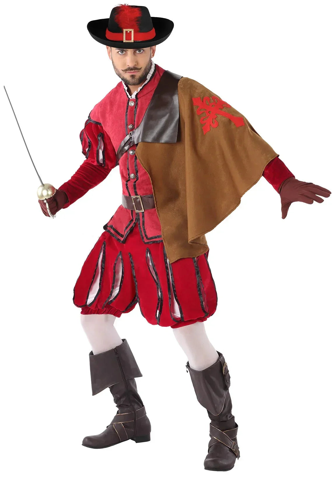 Stai cercando costumi da moschettiere per coppia? Con i costumi da moschettiere per uomo e donna in colore rosso avrete i vestiti perfetti per travestirvi come questi leggendari spadaccini e trionfare alla festa in maschera.