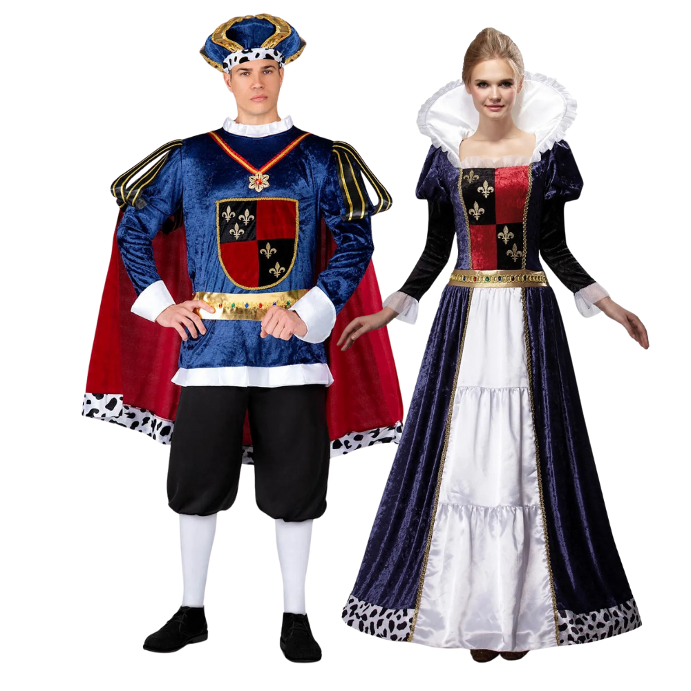 Stai cercando costumi medievali per coppie? Con i costumi da re e regina medievale per uomo e donna avrete i vestiti perfetti per travestirvi da potenti sovrani del Medioevo con lo stemma sul petto e trionferete alla festa in maschera.