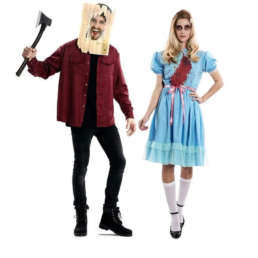 Stai cercando costumi di Halloween originali per coppie? Con i costumi di Shining per uomo e donna avrete i vestiti perfetti per travestirvi da Jack Torrance l'assassino e dalle gemelle assassinate del film horror di "Shining" e trionfarete alla festa di Halloween.