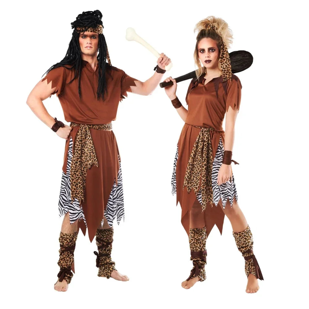 Stai cercando costumi da cavernicolo per coppie? Con i costumi da troglodita per uomo e donna avrete i vestiti perfetti per travestirvi da cromagnoni e neandertaliani della preistoria e farete un figurone alla festa in maschera.