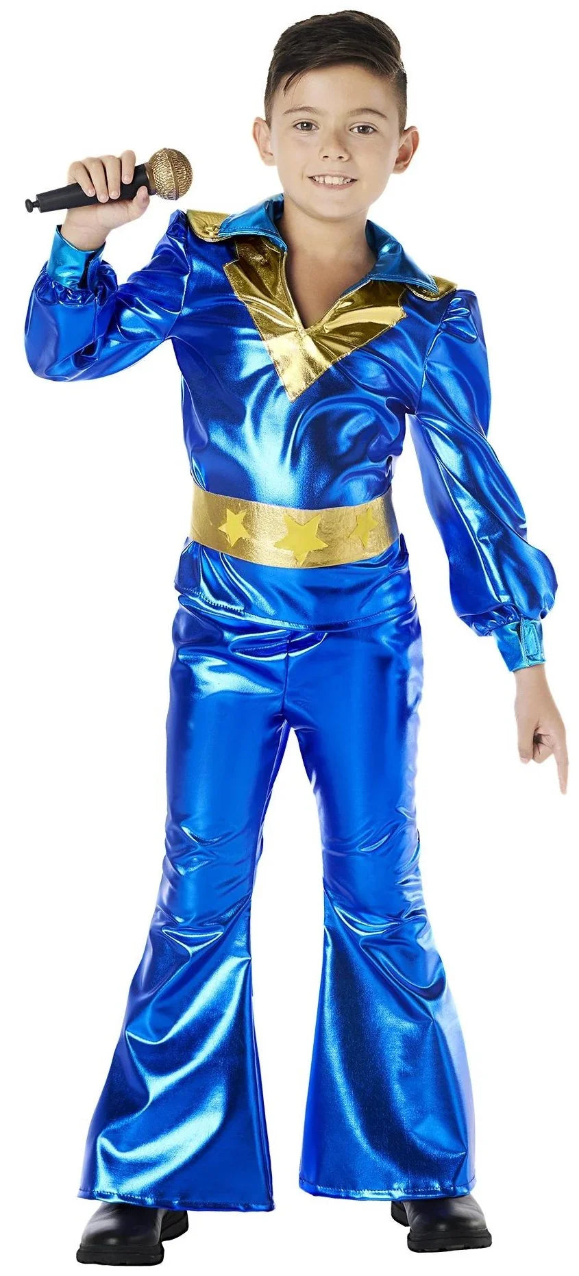 Costume Disco Anni 70 Blu e Dorato per Bambino
