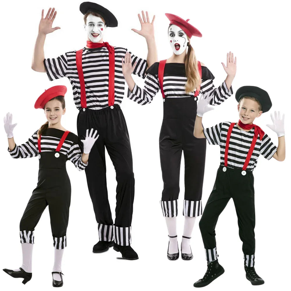 Stai cercando costumi da mimo per travestirti in gruppo o in famiglia? Con i costumi da mimo per uomo, donna, bambino e bambina avrete i vestiti perfetti per travestirvi in famiglia o in gruppo come questi simpatici artisti della mimica e trionferete alla festa in maschera.