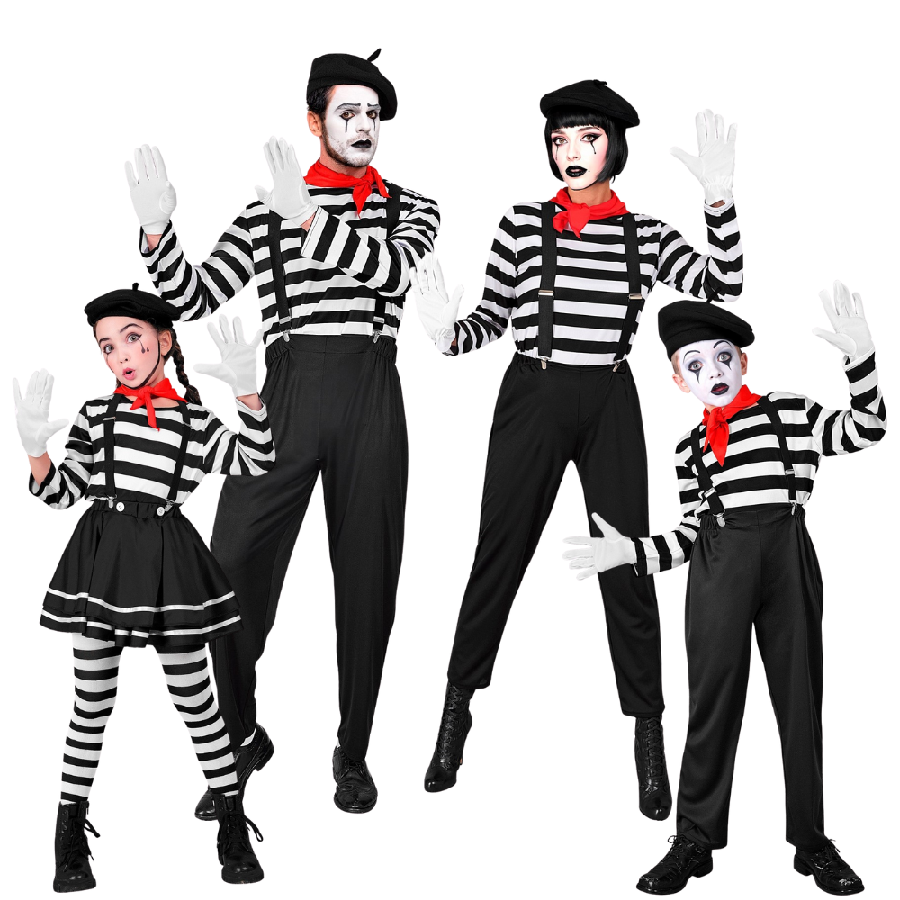 Stai cercando costumi da mimo per travestirti in gruppo o in famiglia? Con i costumi da mimo classico per uomo, donna, bambino e bambina avrete i vestiti perfetti per travestirvi in famiglia o in gruppo come questi simpatici artisti della mimica e trionferete alla festa in maschera.
