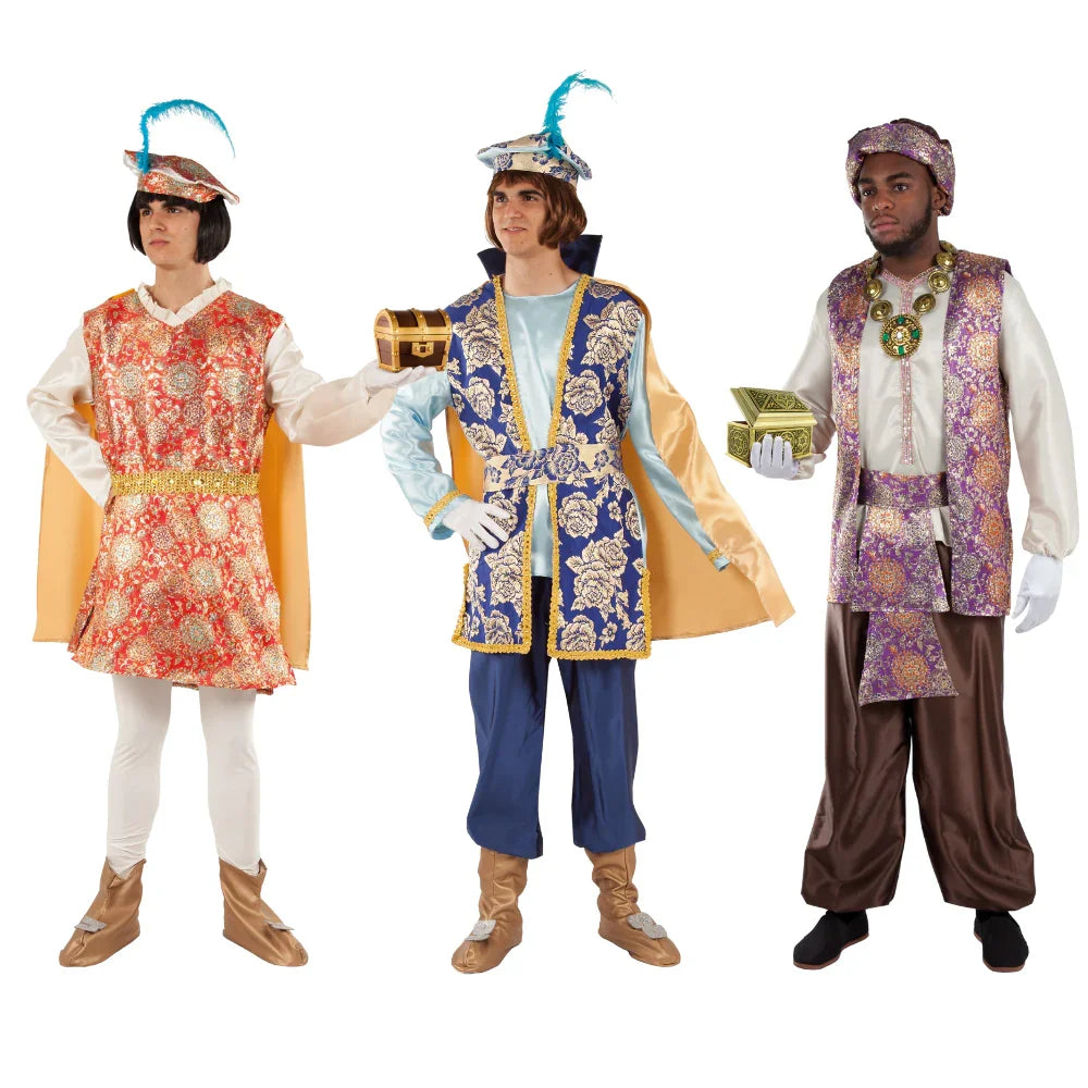 State cercando costumi da paggio dei Re Magi per travestirvi alla Cavalcata di Natale? Con i costumi da paggio elegante per uomo nei colori rosso, blu e viola avrete degli abiti di grande qualità e design per travestirvi come gli aiutanti di Melchiorre, Gaspare e Baldassarre alla Cavalcata dei Re e porterete l'illusione ai più piccoli di casa in questa data natalizia così importante.