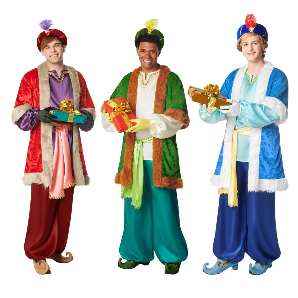 State cercando costumi da paggio dei Re Magi per travestirvi alla Cavalcata di Natale? Con i costumi da paggio natalizio per uomo nei colori blu, verde e rosso avrete i vestiti perfetti per travestirvi come gli aiutanti di Melchiorre, Gaspare e Baldassarre alla Cavalcata dei Re e porterete l'illusione ai più piccoli di casa in questa data natalizia così importante.
