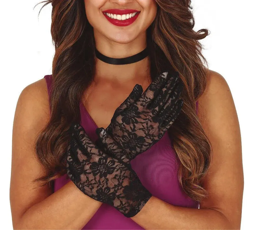 Stai cercando dei guanti di pizzo per il tuo costume? Con i guanti neri di pizzo decorati con fiori avrai l'accessorio perfetto per una grande varietà di costumi, e trionferai alla tua festa.