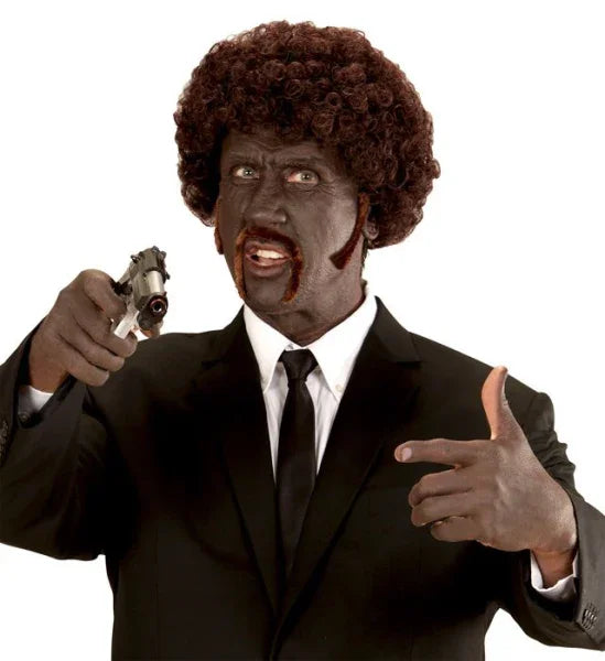 Include: Parrucca afro di alta qualità, include basette e pizzetto, colore castano scuro. Speciale di Pulp Fiction