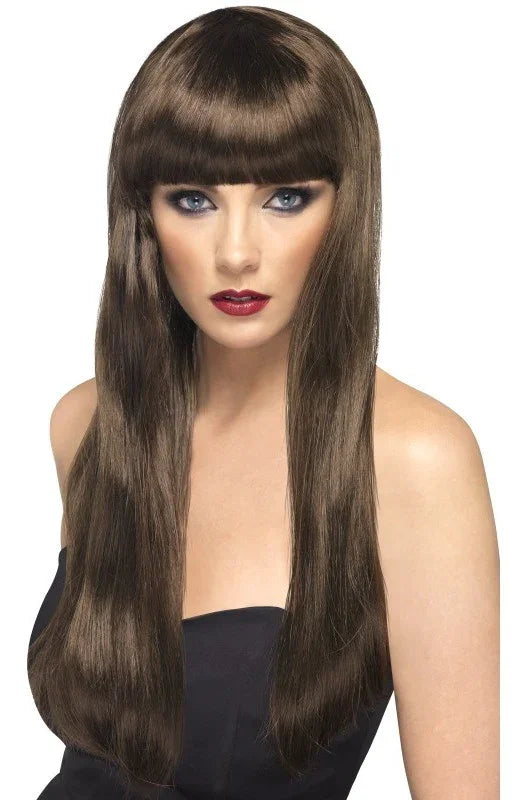 Parrucca Castana Liscia con Frangia