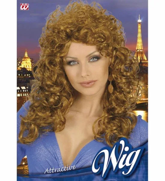 Il complemento include: Parrucca marrone chiaro riccia con lunga chioma. Composizione: Capelli sintetici.
